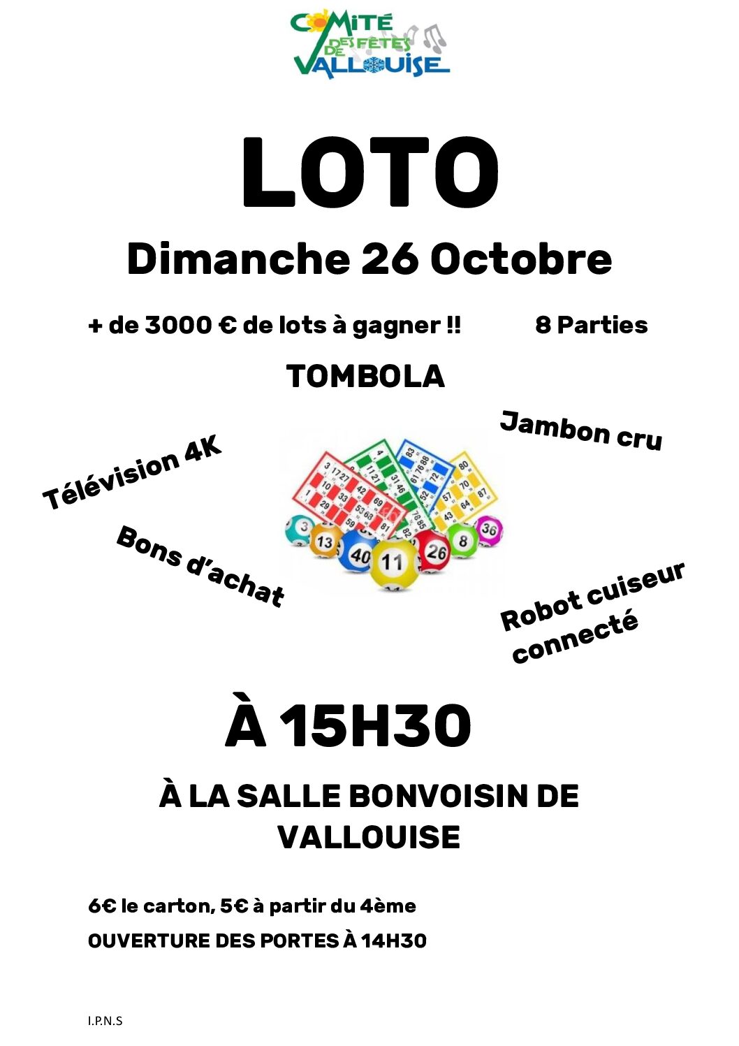"LOTO" du comité des Fêtes dimanche, 26 octobre 2025